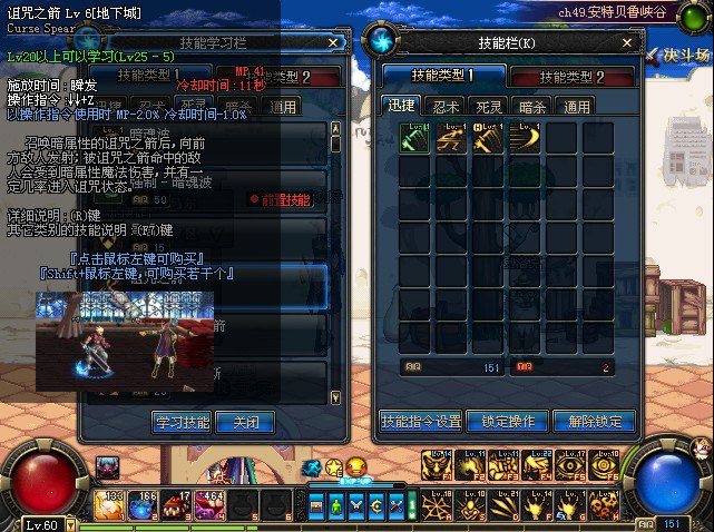 为了能够熟练的使用技能,玩家有必要加强练习.经常需要使用的技能,可以尝试设置为快捷键.