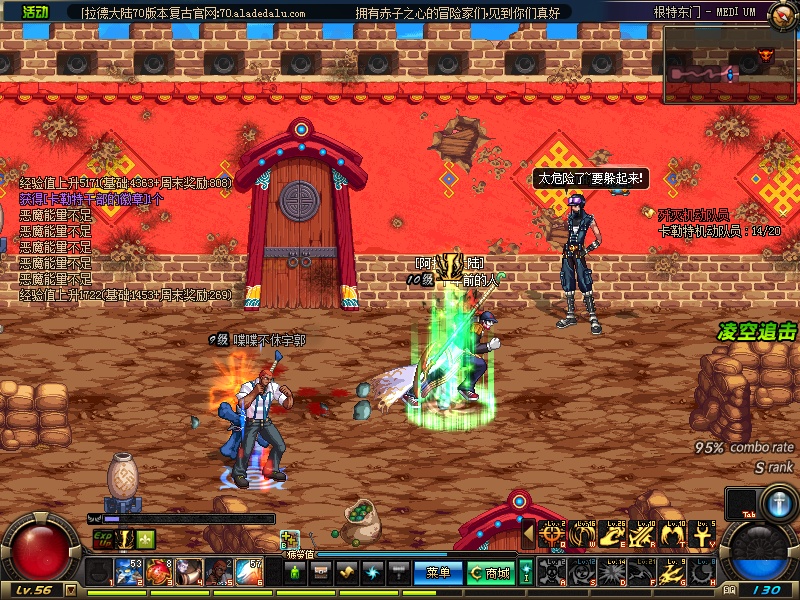 就这样费劲的打了5-6次,最后神奇的发现,泰拉石够了…靠,复仇者是后妈设计的职业呀,凭毛线剑魂就刷的过,而且仅仅比我高2级。