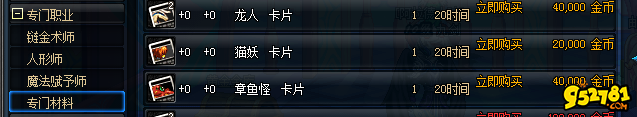 炼金材料可在诺顿商店购买;人形师是人偶;魔法赋予师是附魔宝珠;专门材料是附魔卡片
